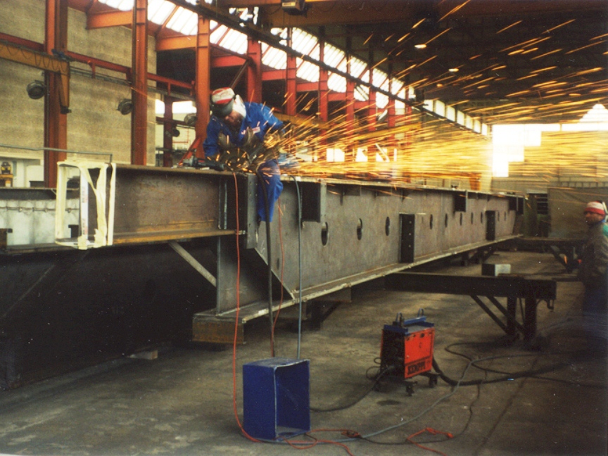 Radier en béton armé sur sol de très mauvaise portance. Structure métallique en grille de poutres. Angles de la structure libres et en porte-à-faux.