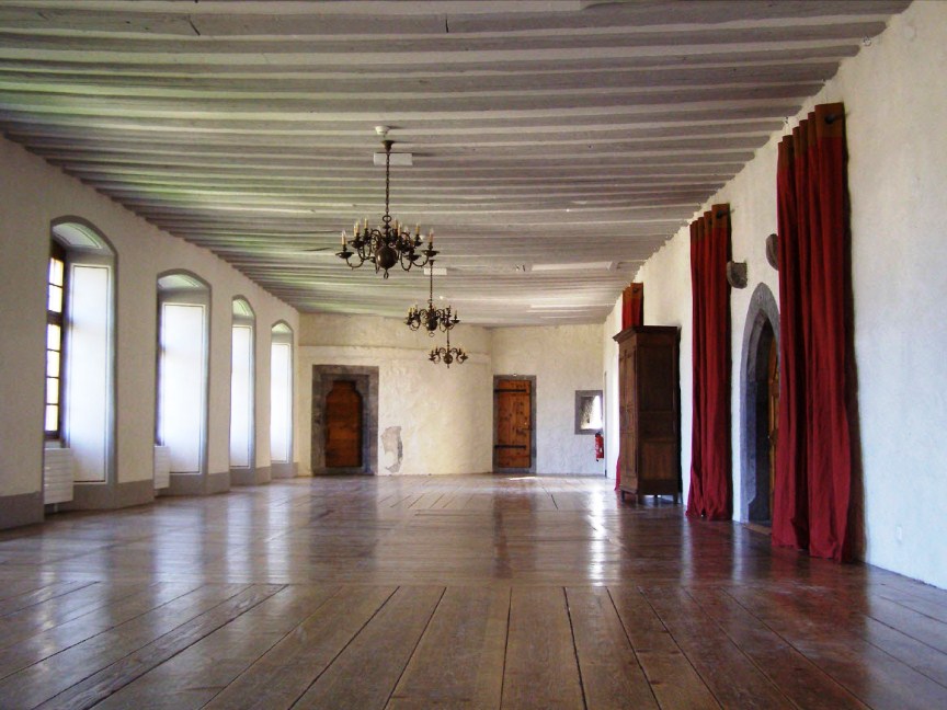 Plancher à renforcer avec faux-plafond historique à voutain en maçonnerie. Solution par la création de poutre et nouveau plancher sur le plancher existant. Divers renforcements de charpentes. Divers renforcements de maçonnerie de pierre.