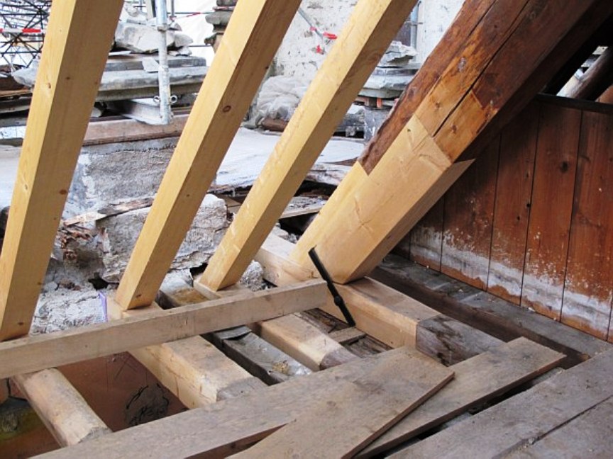 Rénovation complète du château de l'Aile, Création d'un garage, reprise en sous-oeuvre des sous-sols du château, ravalement des façades, assainissement de la charpente.