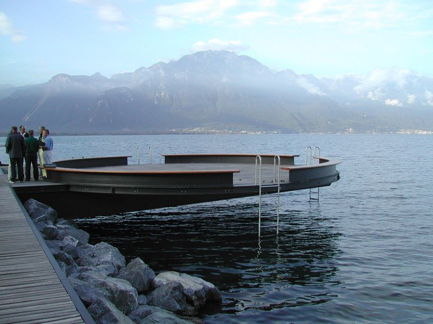 Élargissement du quai avec un ponton suspendu, surface de 300m2 pouvant supporter 1'800 personnes.